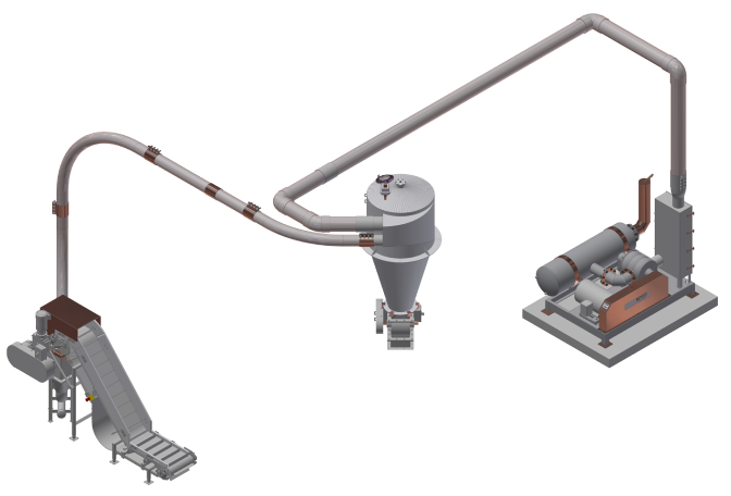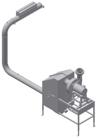 The REYCO Positive Pneumatic conveying system offers a more efficient, cost-effective alternative. A blower pressurizes a waste pipe that runs under the cutting deck, in the foundation, or along the roof. Waste is fed into the system through rotary airlocks and quickly transported to a truck or bin for removal—without the need for water, conveyors, or lift trucks. REYCO also provides a full line of related components to ensure smooth waste handling and disposal.
